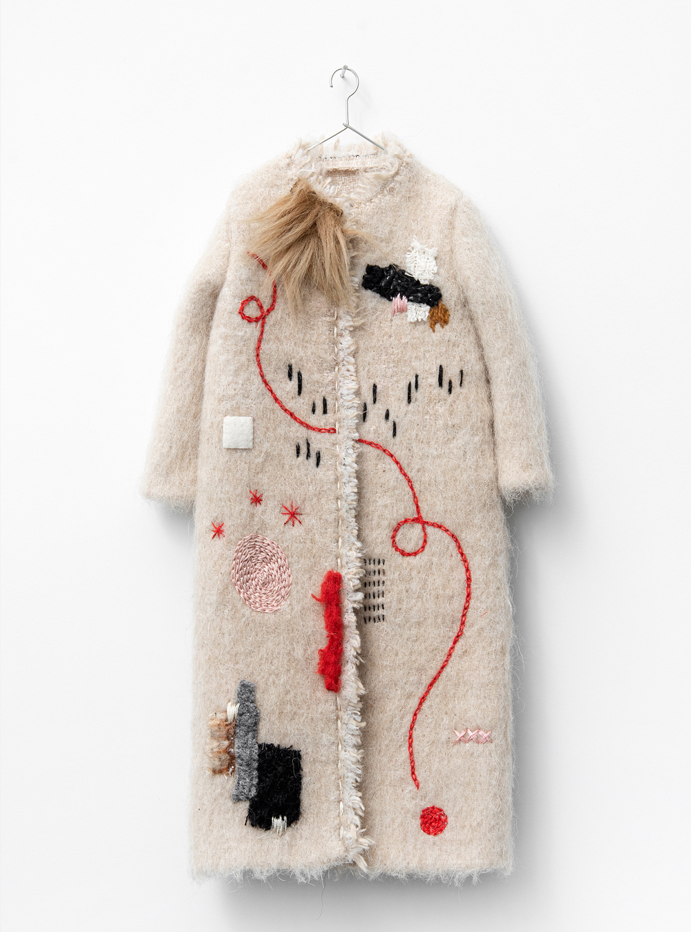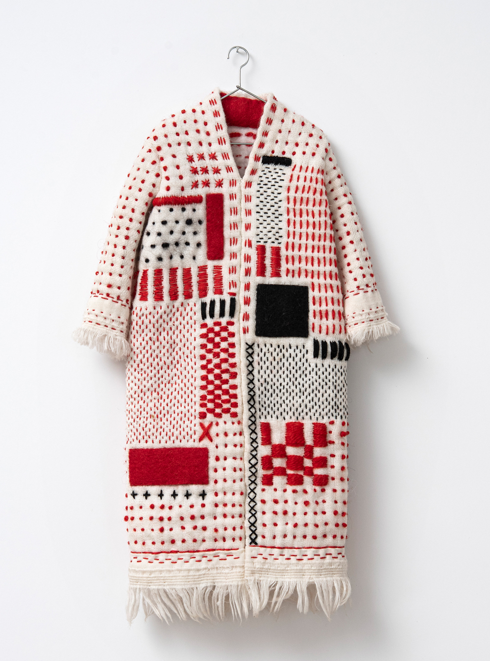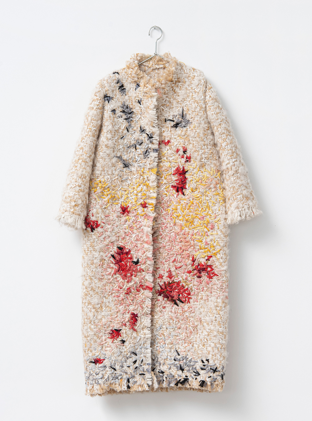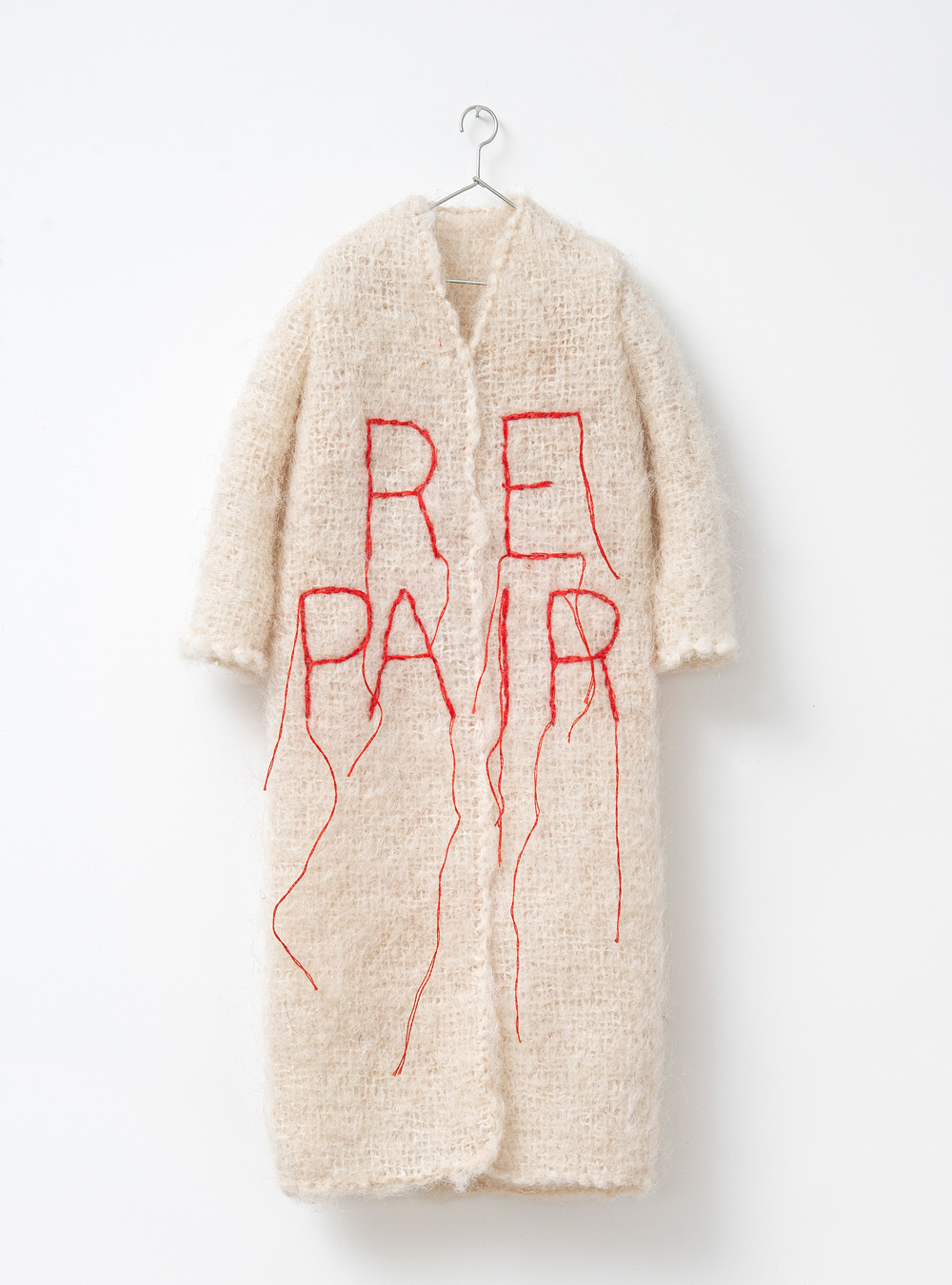 Meta reflects on the historical significance of domestic craft. “For centuries, women mended and renewed clothes at home. Clothes were expensive and therefore treated with respect and care. Today, we should buy less but better and take care of these garments when damaged or when we grow bored with them. I love the idea of reimagining domestic handicrafts and placing them into a contemporary setting to repair or reinvent a wardrobe staple.”