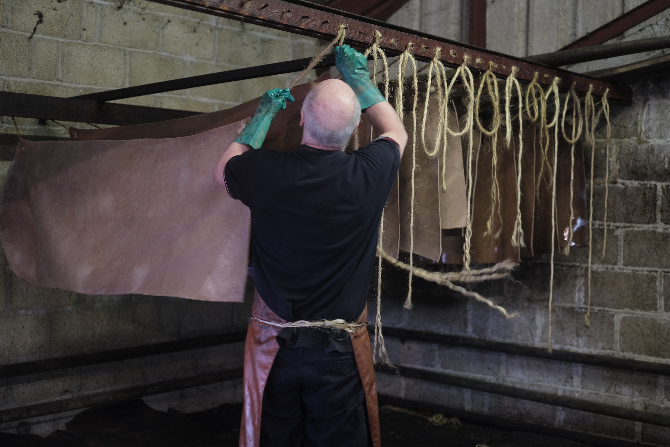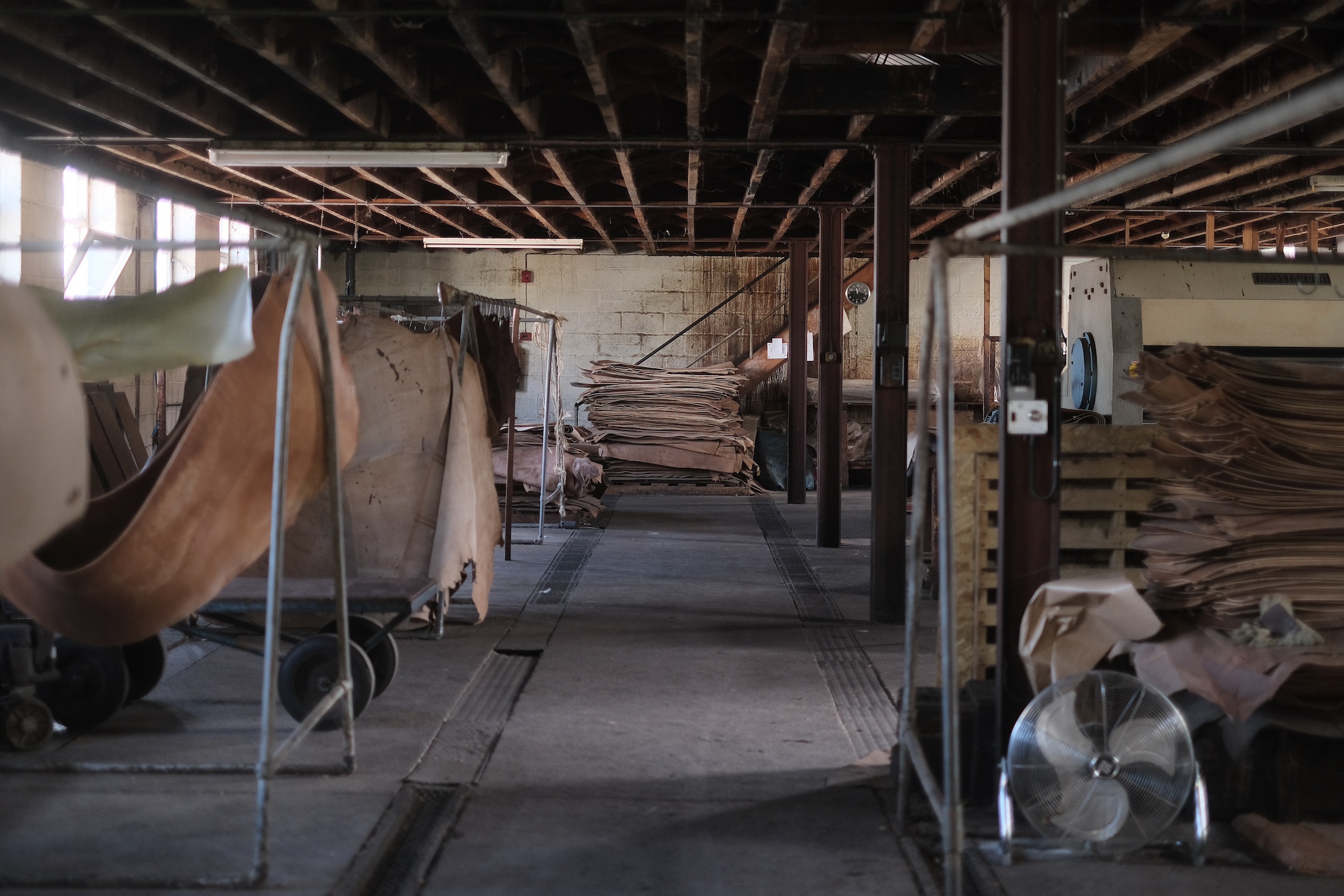 We used to be leather crafters back in Hong Kong; and for a decade, we taught at Fungus Workshop and created custom products through commissions. It was only a year before we moved to the UK that we established our own studio, Cowrice Studio, where we produce leather goods and handbags that we love. Our products feature clean lines, high quality, and durability. We sell them primarily online and at a select store called Goddag Studio in Hong Kong. During our first year in the UK, our main focus was finding suitable leather suppliers. We were hoping to find locally-sourced leather of good quality, with the right colors and thickness to complement our products. Lucky enough, our shoemaking teacher in the UK introduced us to J&FJ Baker & Co Ltd, a traditional leather factory located in Devon, in the southwest of England. With a long history dating back to 1862, the factory is now managed by its sixth-generation family owners, and being the last remaining factory in the UK that still uses oak bark in the tanning process, the leather they produce is highly regarded by artisans throughout the country.
