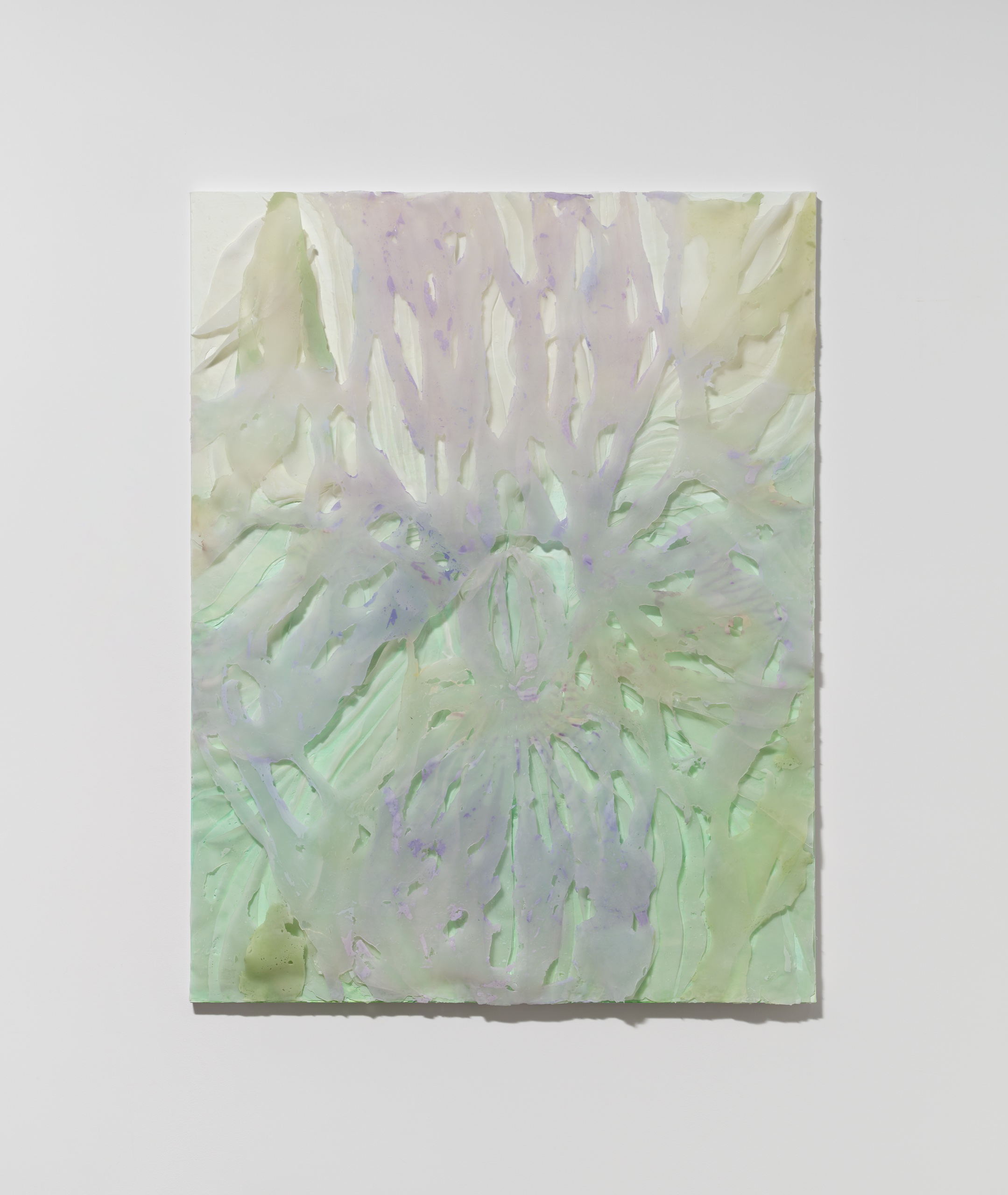 HC:近年來,我一直在重新審視傳統的繪畫主題,例如是風景、靜物和花卉在當代視覺藝術中的脈絡,同時探索非傳統的繪畫表達方式,解放塑膠彩顏料的性質和色彩。去年在首爾的個人展覽「Receiver」是通過探索自然物體和它們產生的物質狀態來進行反思。創作這些作品時,我組合了網絡上由不同人分享的自然事物的相片掃描,包括它們的紋理、圖像或是結構。展覽中的作品承載著傳輸或轉移被數據化的自然事物,或是複製和模仿自然的形態,或是吸收背景或環境。透過重新「物質化」它們,這些看似熟悉的物體以不同的方式組合,猶如一個尚未被探索、談論的新自然。我還嘗試灌注花朵精神上的、療癒的力量於作品之中。