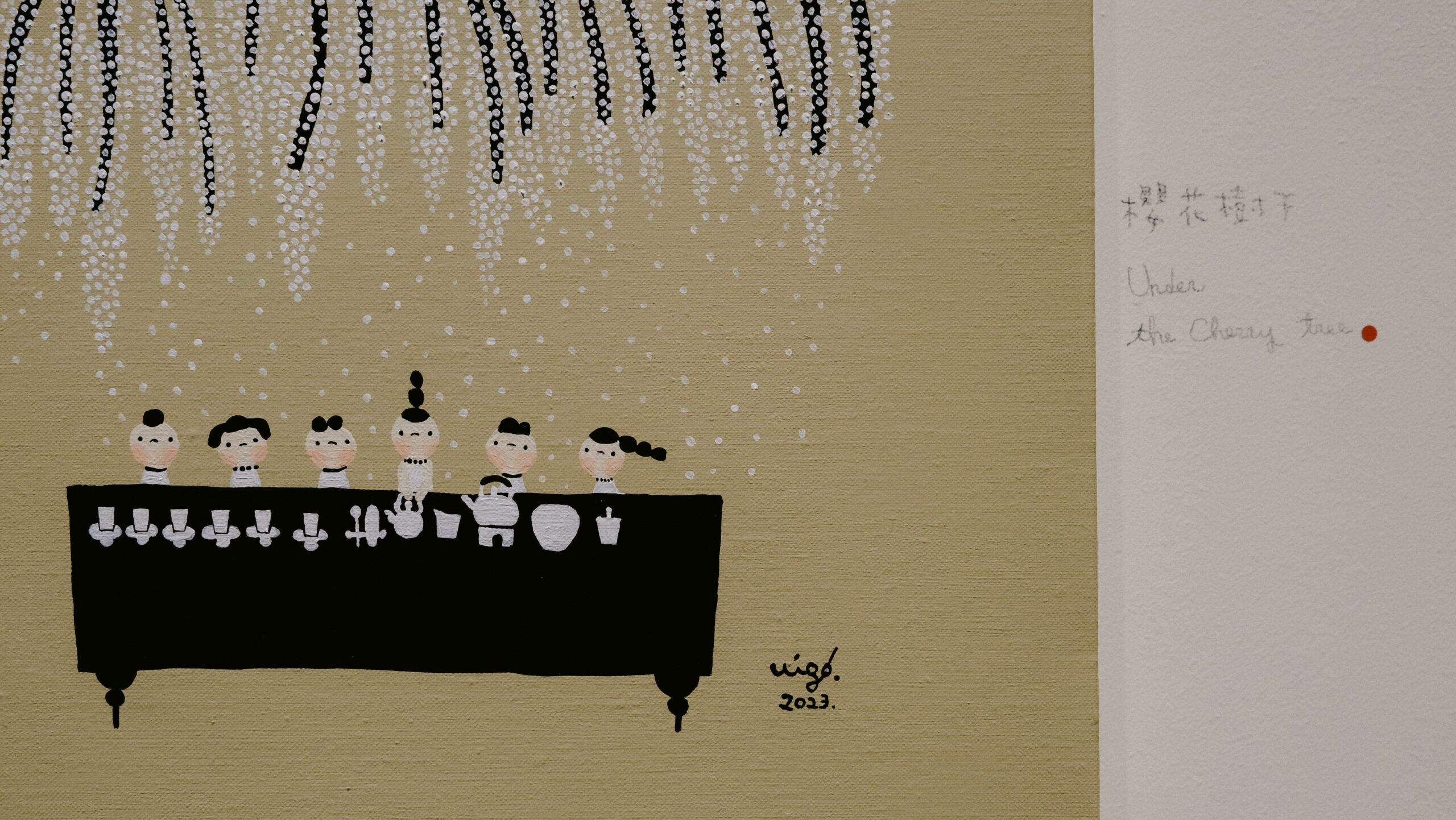 「我喜歡茶多於咖啡,我最近也很喜歡中樂團,很多人關注西方的管弦樂團,但其實中樂團也很棒,我想透過我的畫作跟大家分享中樂團的美好。 」想著分享美好的心,好像我們共同的目標,每每提及欣賞的事物就會散發出如棉被般柔軟,卻又堅定篤信地滿足感。