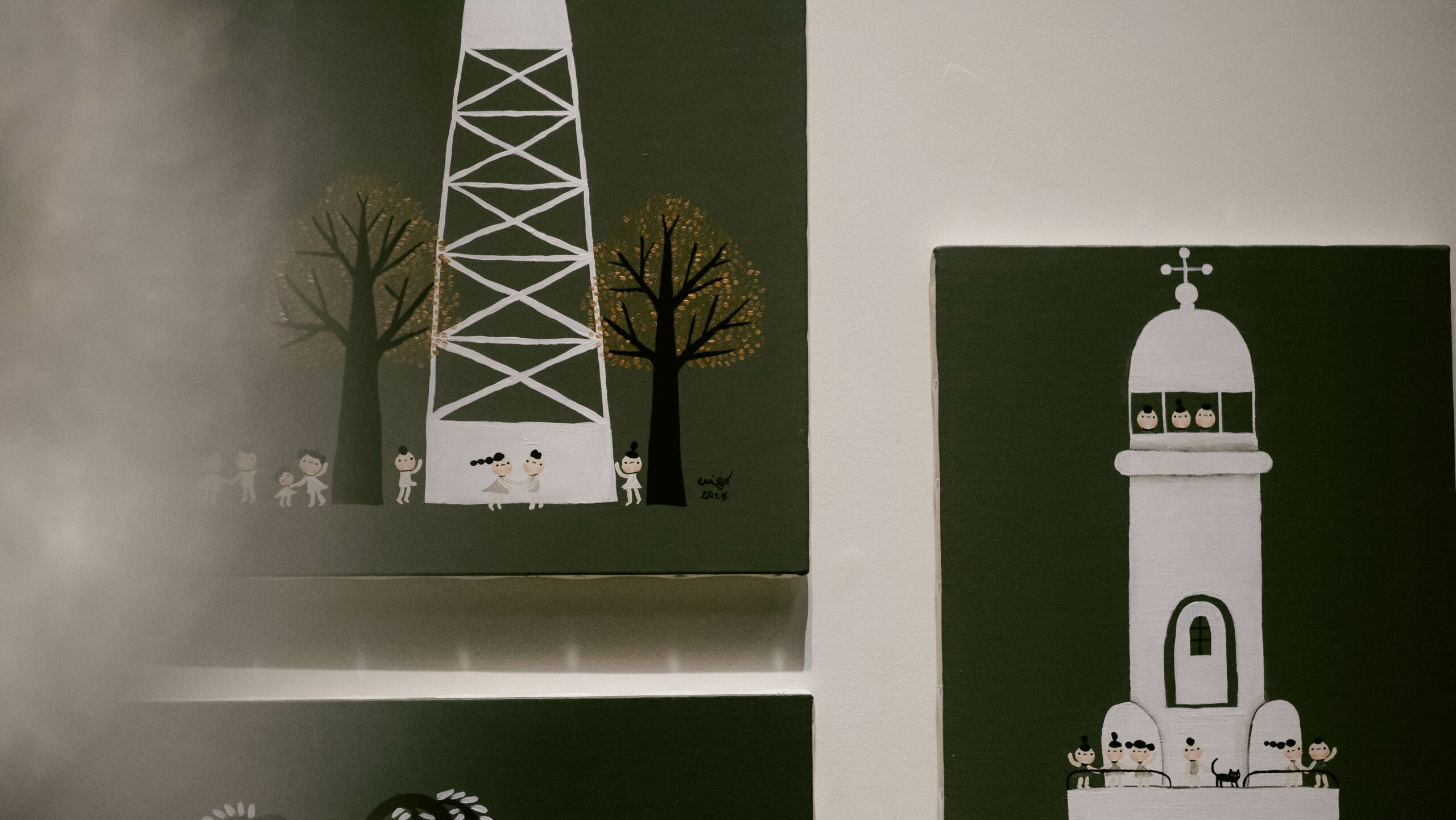 “16 years! I’ve also been working for 16 years. Have you been working as an artist all this time?” Recently, Viga was invited by San Gallery to present a collection of 43 paintings, which marked her first significant solo exhibition in Tainan. “Yes, both Tainan and Kyoto are ancient cities. I have a fondness for antiquity. Through my artwork, I want to convey the similarities and differences between these two places, incorporating elements such as lighthouses, trees, and boats…”