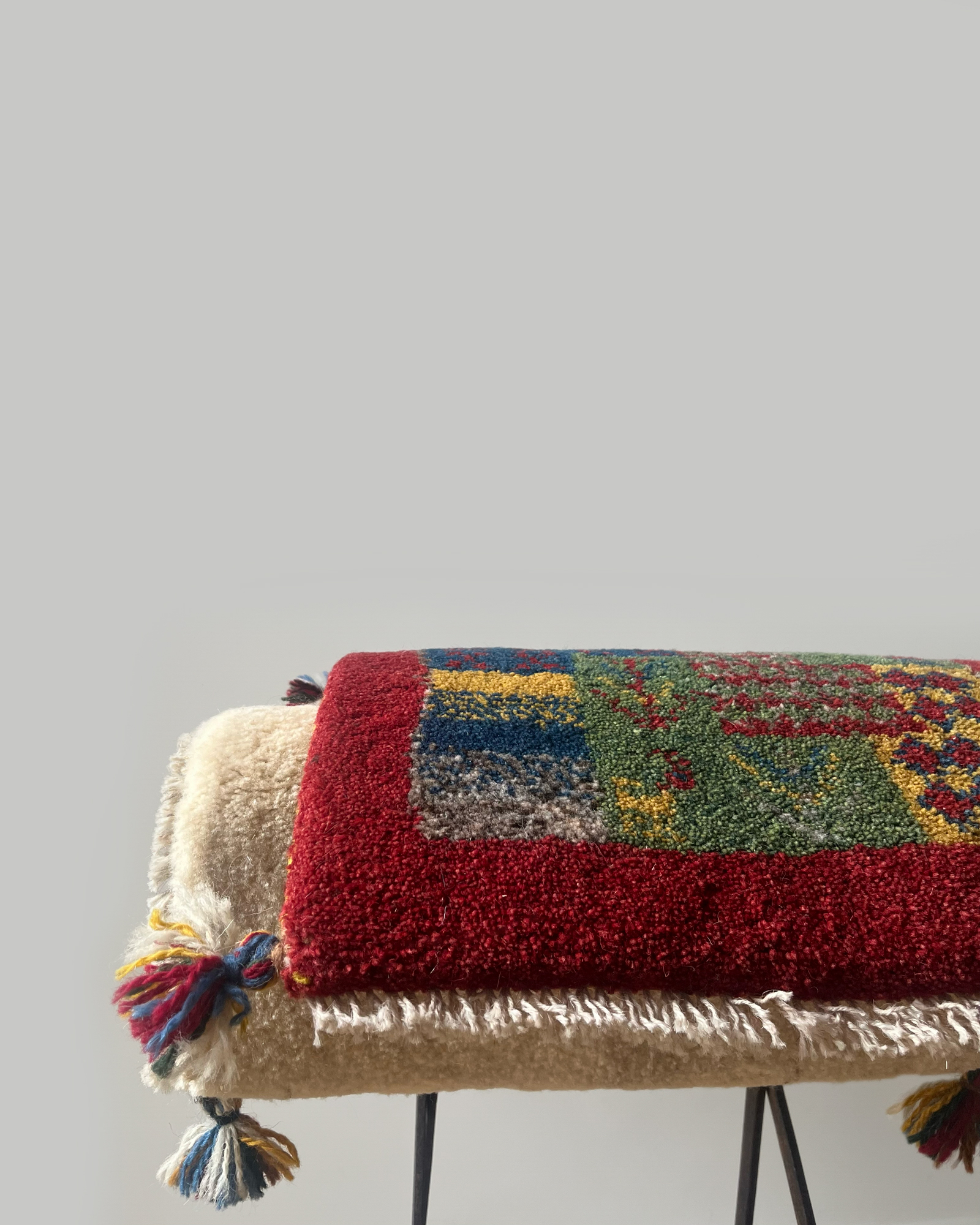 它是伊朗遊牧民族的傳統手藝,族民長年與羊群共生、遷徙、務農,地毯上的圖案沒有固定樣式,通常由女性製作,她們會把眼前的土地、動物、四季交替的幻變景貌編織成一幅幅遊牧見證。偶爾也會出現波斯神話故事為靈感的創作。色澤繽紛到會迷失在各種圖案與花色間,每幅都自成一格,根本是喜好分明的選擇題。
