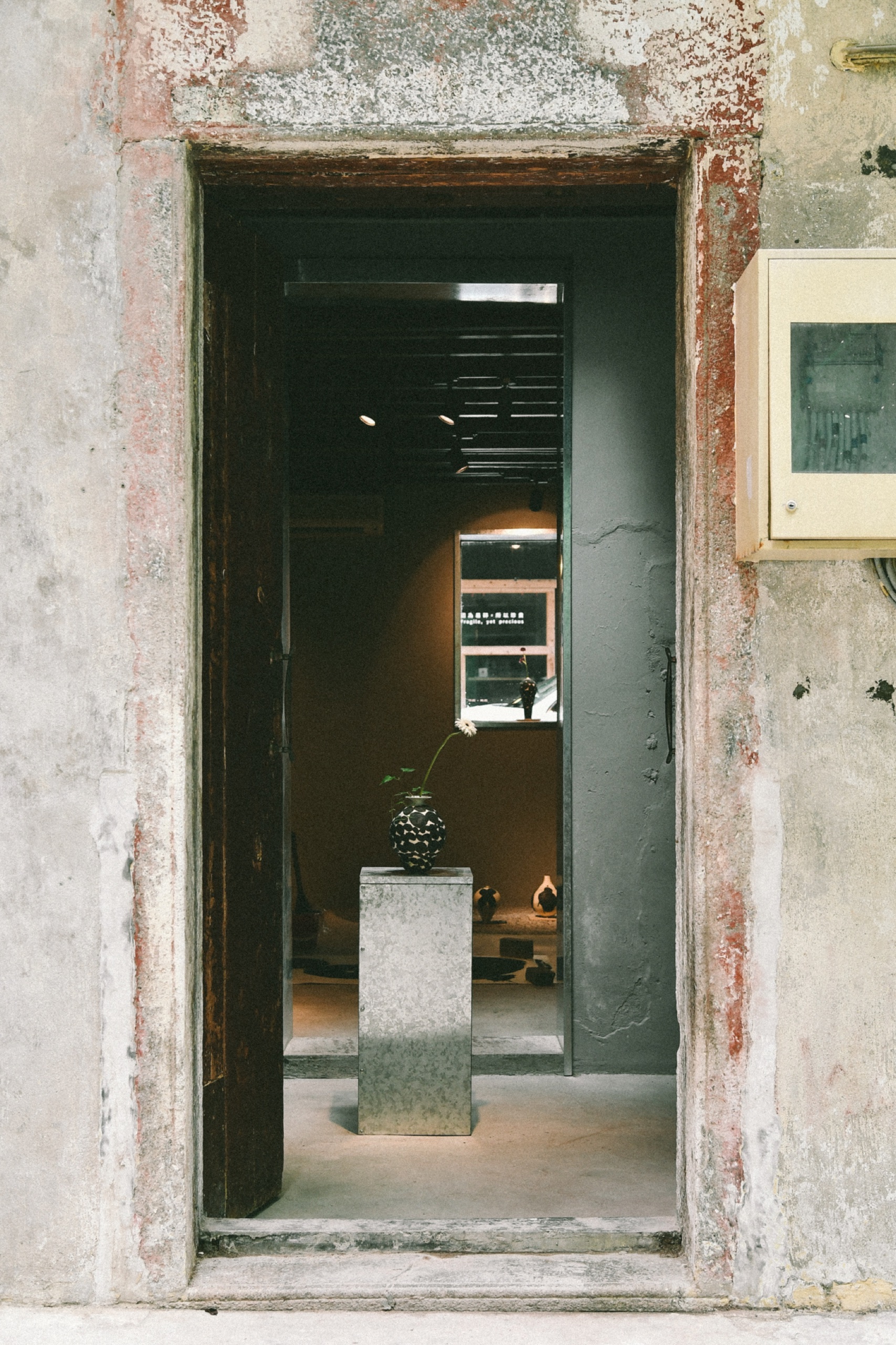 Alex, a lover of Hong Kong’s old architecture, established an art space called THE SHOPHOUSE in Tai Hang a few years ago. Recently, he found an even older two-story building nearby to serve as a new exhibition space called otherthings. With no signage or markings, the vermilion wooden door makes the space feel like a long-abandoned building. Inside, the solo exhibition , EX TERRA, by artist Kansai Noguchi was quietly unfolding. The simple, classical ceramics echo the aged character of the space, creating a zen-like atmosphere that calmed the mind.