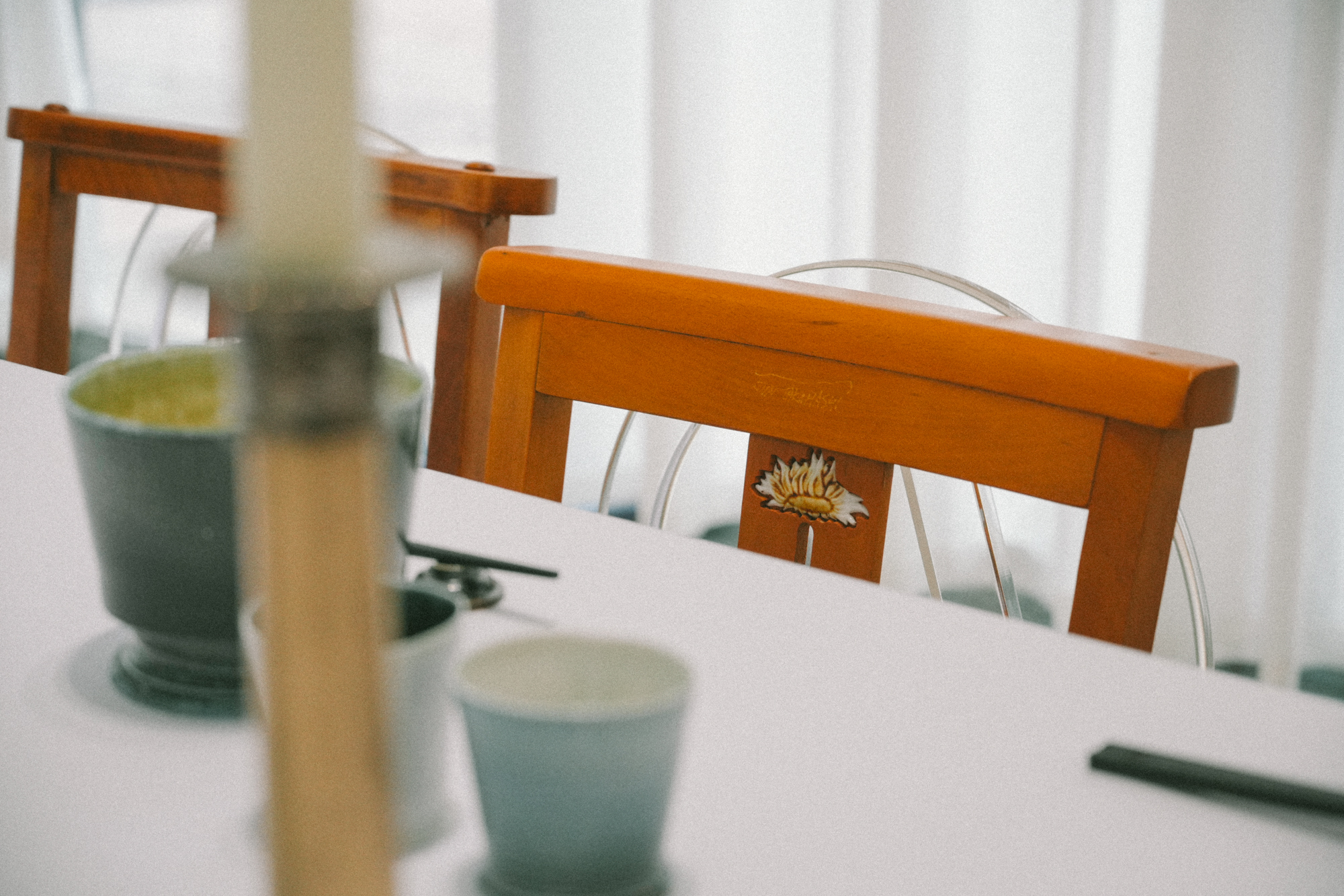 Every time he travels, Harrison brings along his handmade cup and tea tools. “For the exhibition’s dining experience, I needed to pack some plates and cups, so I brought two teacups—one of mine and one belonging to Julia. I used mine yesterday for tea, and it felt wonderful.” Through using, the beauty of vessels naturally unfolds, enabling him to share his story effortlessly. “If you focus on the outcome, the energy is different. I think we should never judge; just enjoy doing it.”