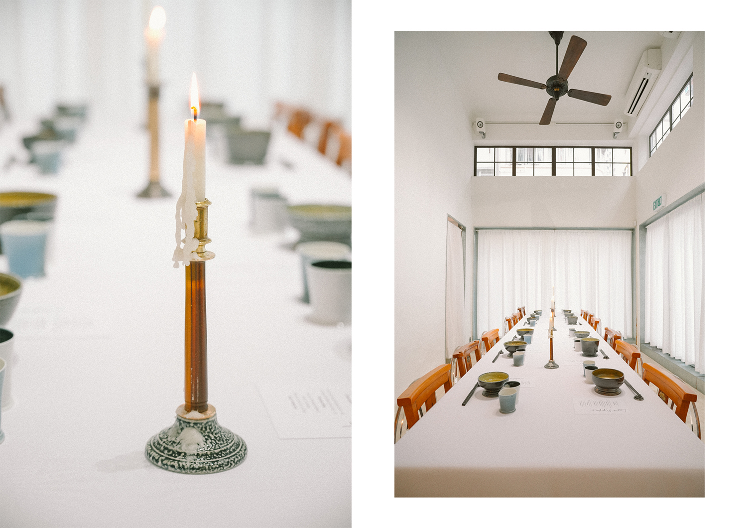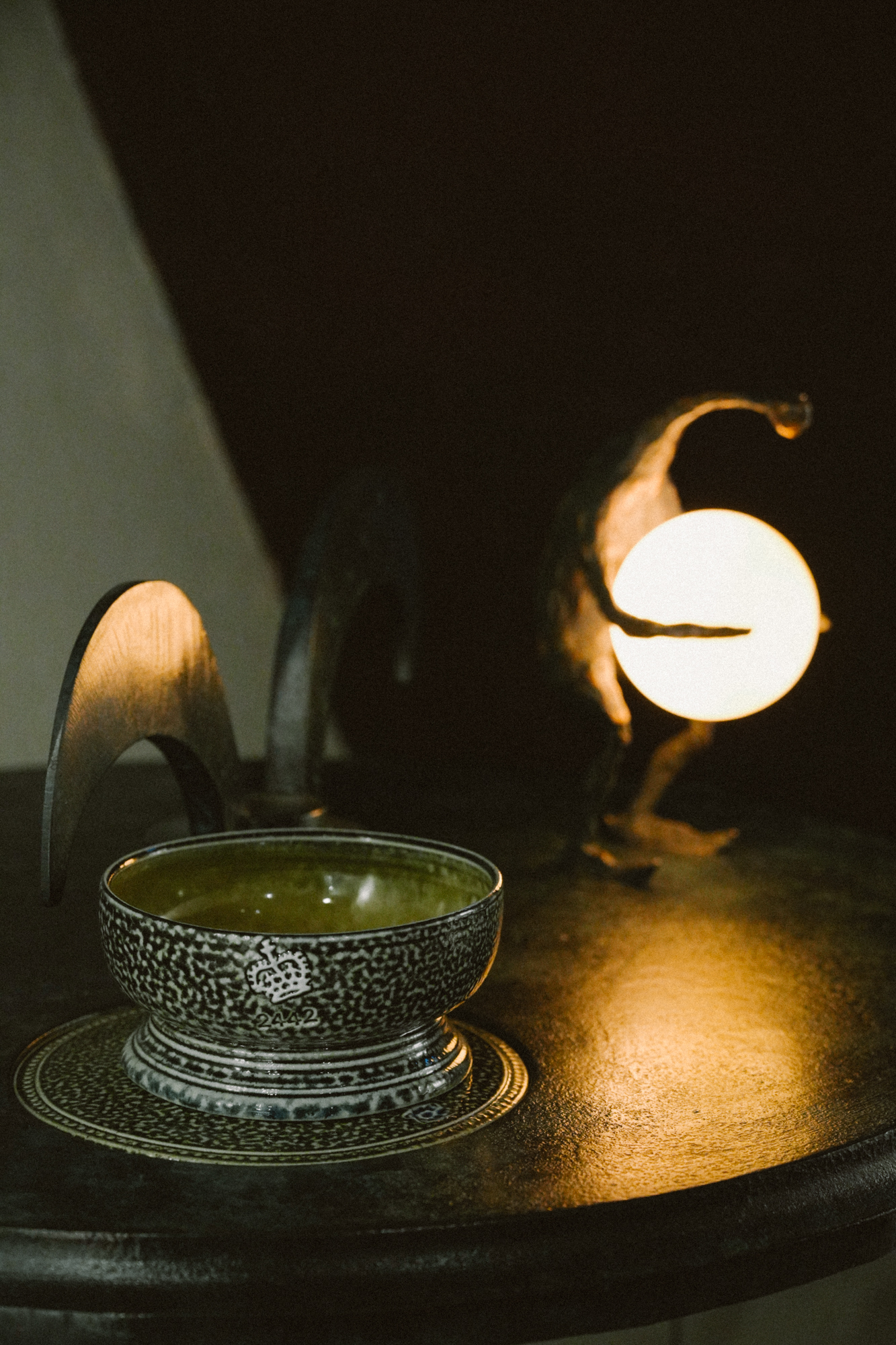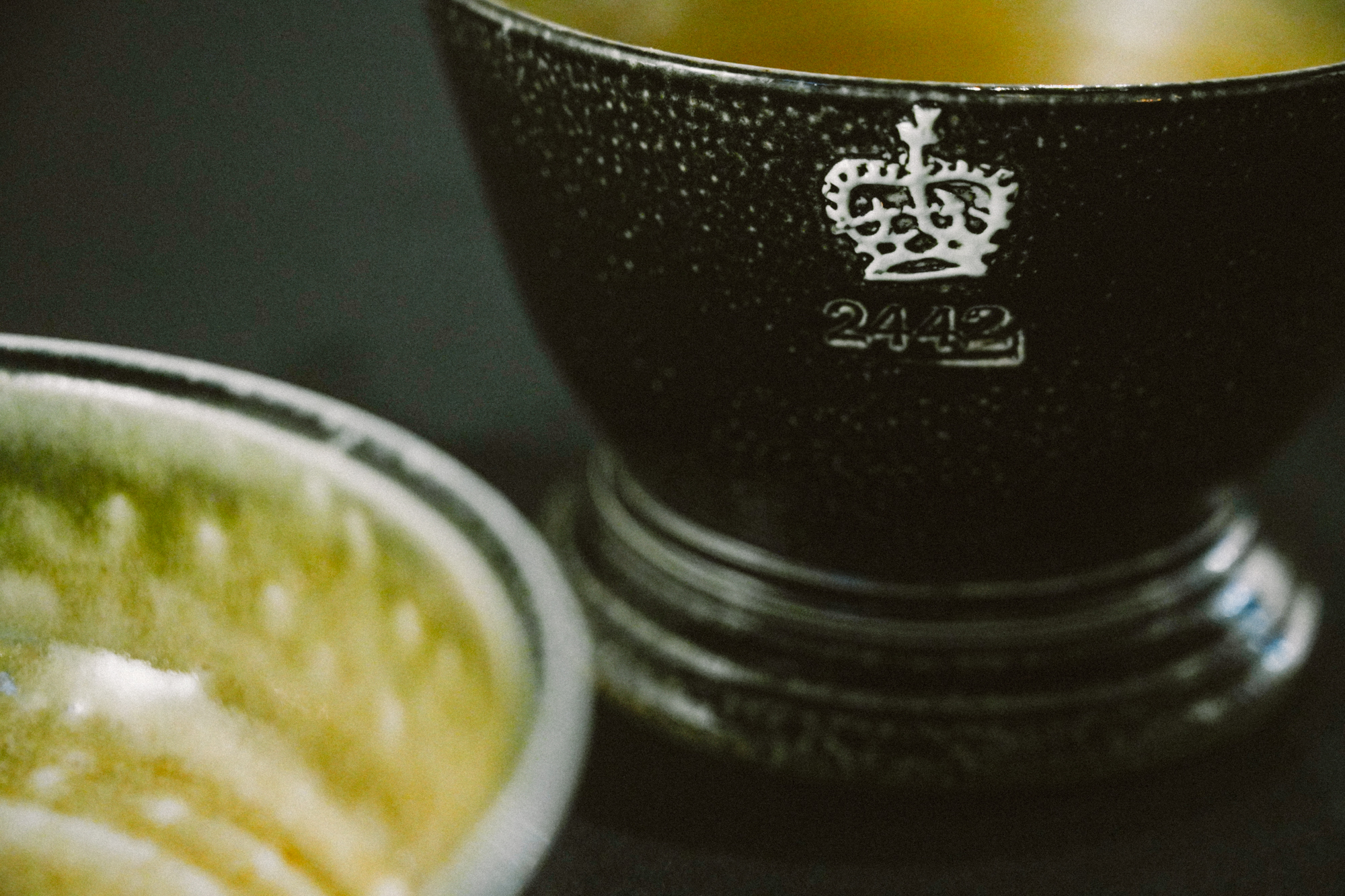 Harrison explains that the beaker series marks a new creative direction for him. The combination of the elevated foot and the bowl requires exceptional skill, as it is prone to collapse during firing. “Once a piece enters the kiln, its fate is uncertain—only about 50 to 70 percent typically survive. However, I made 24 pieces this time, and astonishingly, all came out intact!” He enjoys infusing subtle details into his work; for instance, the number “2442” etched into the bowls references a scene from the Hong Kong film Rigor Mortis. “When these beakers are arranged on a long table with candles, sharing food becomes a sacred act, reminding us that every meal can be as beautiful and precious as the Last Supper.”